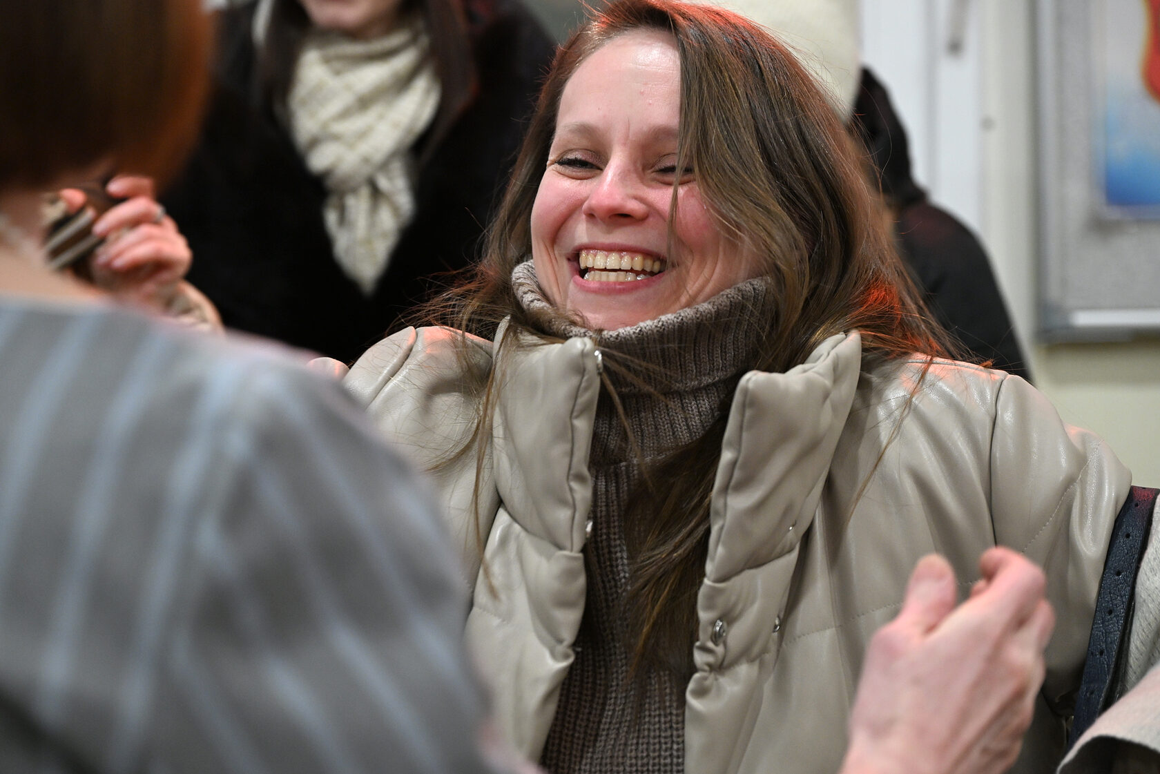 На вечер встречи пришли ребята почти из всех выпусков, начиная с двухтысячного года. Конечно, с нами не смогли быть многие из тех, кто живет за границей, но они прислали видеоприветы и для них организовали прямую трансляцию.